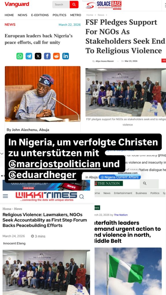 Pressemeldung: Kugler nach Nigeria-Reise – Europa darf Christenverfolgung nicht ignorieren – konkrete Maßnahmen notwendig. Detail- und Fotolinks unten.