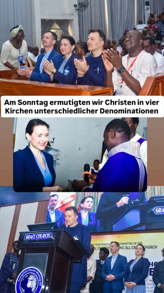 - Unsere Besuche in Kirchen und unsere Grußbotschaft dort: https://gudrunkugler.at/ermutigung-in-abuja-tag-2-vormittag/
