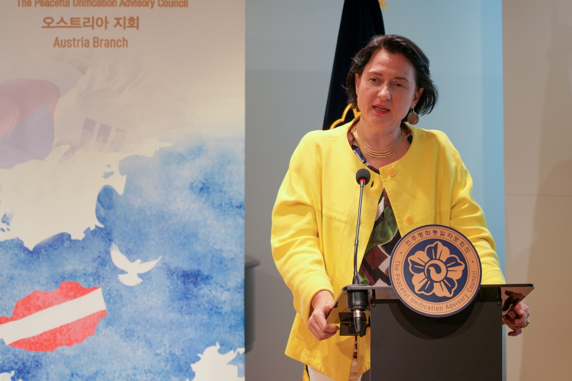 Als Rednerin auf dem Seminar des Peaceful Unification Advisory Council zum Thema „Human Rights in North Korea- Reality & Solutions“ im Koreanischen Kulturzentrum Wien gemeinsam mit Timothy Cho, der selbst aus Nordkorea fliehen musste und heute als Menschenrechtsaktivist in Großbritannien wirkt. „Nicht zu sprechen ist Sprechen. Nicht zu handeln ist Handeln. Schweigen im Angesicht des Bösen ist selbst böse. Gott wird uns nicht als schuldlos betrachten“ – Mit diesen eindringlichen Worten Dietrich Bonhoeffers gab Timothy Cho in seiner Rede haarsträubende Einblicke in das grausame Regime, aus dem er entkommen ist.